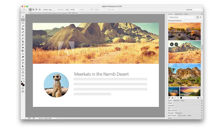Verwenden Sie in Ihren Designs zur Vorschau zunächst Bilder mit Wasserzeichen. Lizenzierung, Zugriff und Verwaltung sind dann direkt in Photoshop CC, InDesign CC, Illustrator CC oder einer anderen Adobe-Desktop-Applikation möglich.