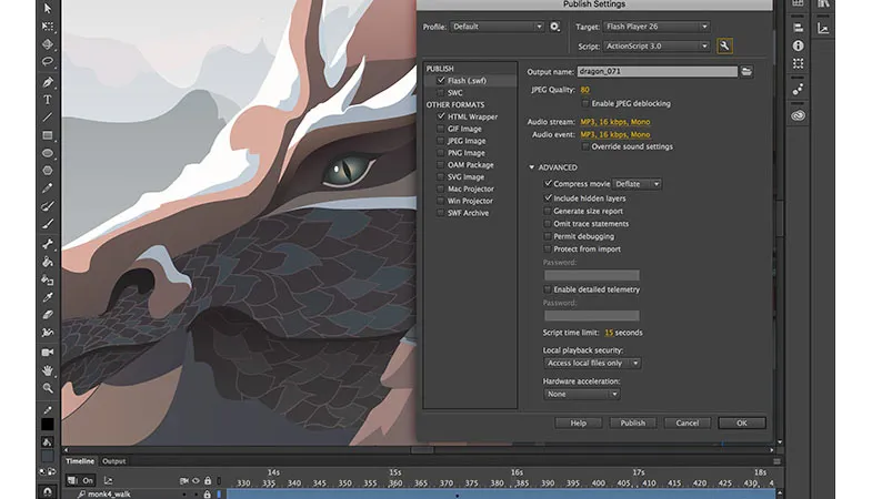 Erreichen Sie Ihr Publikum auf Desktops, Mobil- und Fernsehgeräten. Exportieren Sie Ihre Animationen für HTML5 Canvas, WebGL, Flash/Adobe AIR oder alternative Formate wie SVG. Sie können direkt in Ihren Projekten coden. Aktionen können Sie aber auch ohne Programmierung definieren.