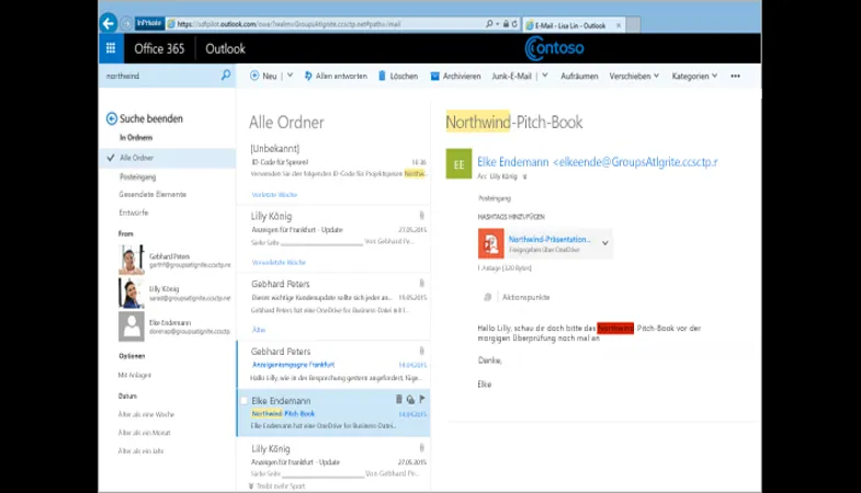 Nie war es einfacher, Mitarbeitern mit einer E-Mail-Lösung produktives Arbeiten zu ermöglichen. Dank automatischem Patching entfallen Zeit und Aufwand für die Systemwartung. Mit einem In-Situ-Archiv geben Sie Benutzern die Möglichkeit, wichtige Daten zentral zu speichern. Greifen Sie in allen gängigen Browsern und von einem Gerät Ihrer Wahl praktisch überall auf E-Mails, Kalender und Kontakte zu. Die Integration in Outlook sorgt für eine vielseitige, vertraute E-Mail-Oberfläche inklusive Offlinezugriff.